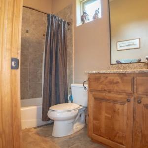 The main home has a very friendly floor plan (4383 square feet per plans) with three full bedrooms and three and a half bathrooms. Each bedroom has its own full bathroom and private door to the exterior. The primary bedroom is surrounded with windows exposing the view and linked to an extravagant bathroom and abundantly large closet with an island that is useful for packing suitcases or folding clothes. The thought that went into this design is apparent. Also, the primary shower stall is also wheelchair accessible and very large with amazing custom tilework and detail.