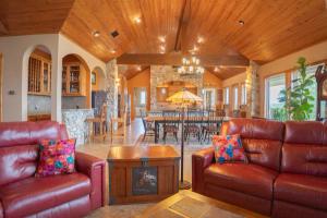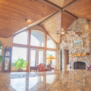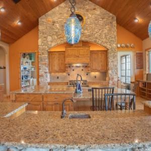 As you enter this beautiful home you will notice the magnificent stonework made from stones gathered from the property. The custom finish, along with the abundant window views, will take your breath away. The amazing tile and wood floors along with the custom woodwork and cabinetry indicate the excellence in craftmanship that went into this home. The vaulted wooden ceilings will amaze you as the interior incorporates with the openness and incredible window views. The entire home is wheelchair accessible with smooth floor transitions, an additional lower sink/counter in the kitchen, and primary bathroom for wheelchair access if needed.