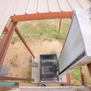 The barn/workshop is a workman’s dream with metal construction including living quarters and two open overhead bays with a separate workroom for projects and benches etc. Above the barn there are living quarters with nicely finished apartment and a deck that overlooks the scenic property with nice views. There are two bedrooms and one bathroom with a full kitchen and a spacious living area offering excellent accommodations for guests. This apartment has an elevator for wheelchair access that is currently nonfunctioning but could be restored.